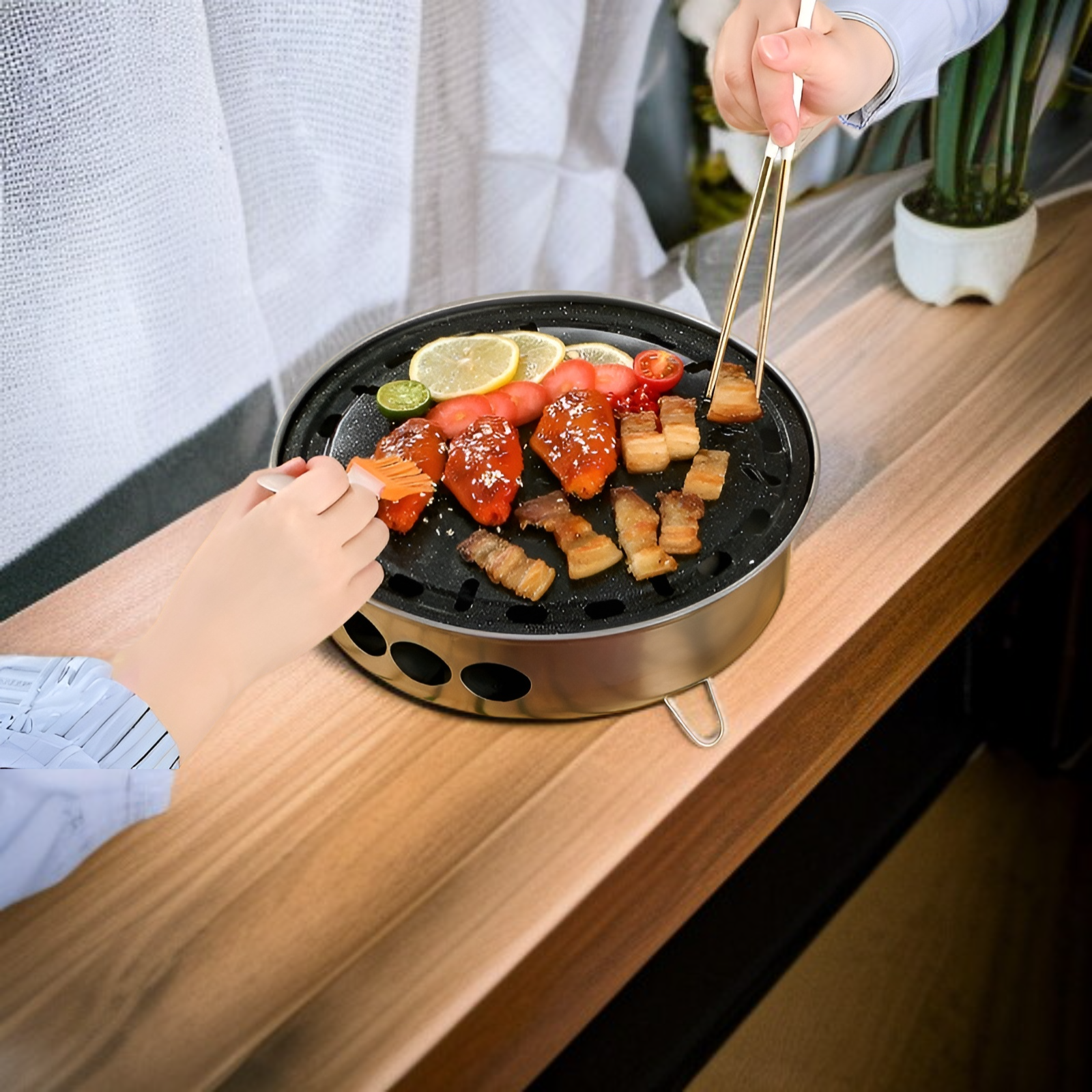 ● Vielseitige Grillplatte und Grillofen, ideal für Fleisch, Gemüse und Fisch, sorgt für authentischen Grillgeschmack im Freien.