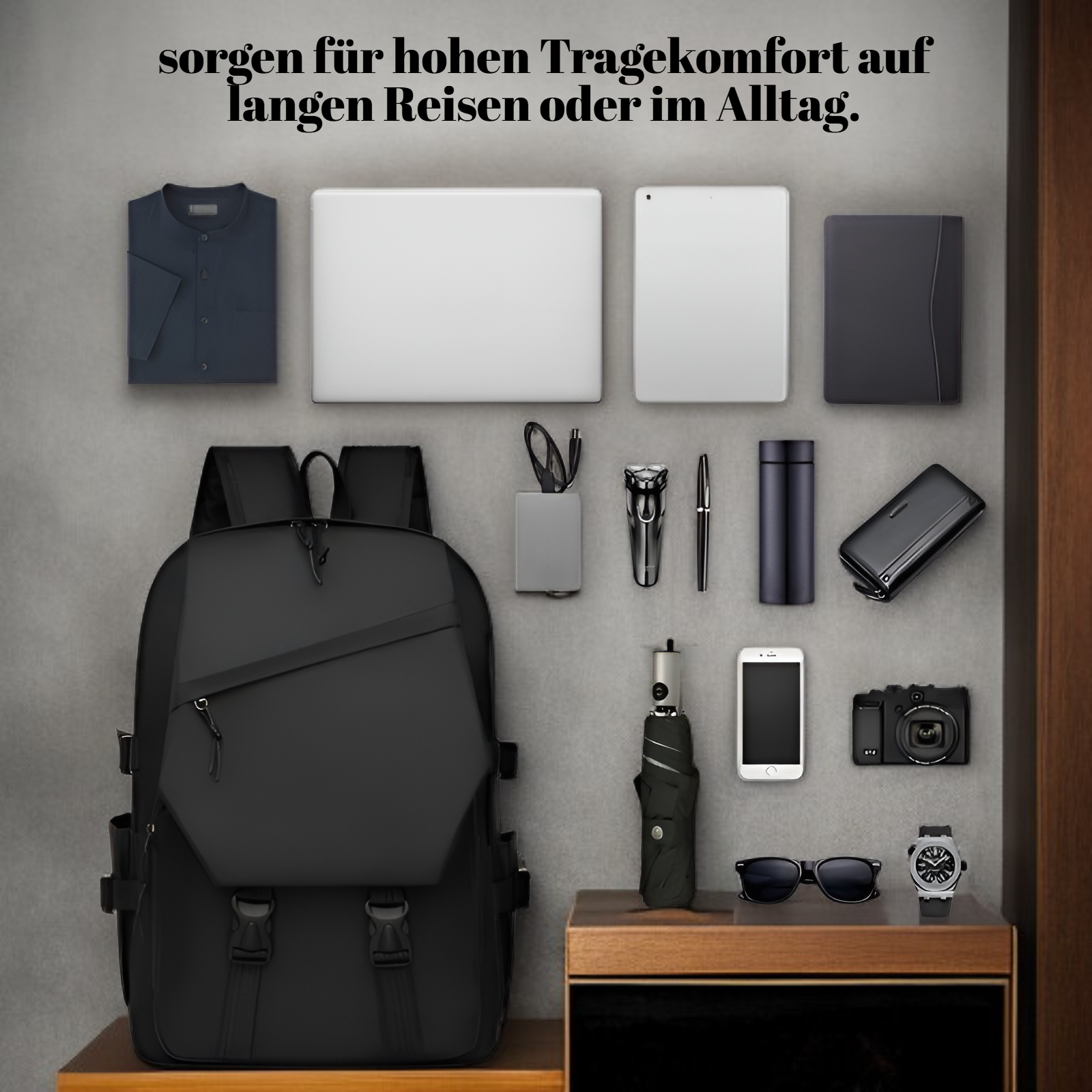 ● Vielseitiger Doppel-Schulterrucksack mit innovativem Design bietet flexible Tragemöglichkeiten für Alltag, Reisen und Outdoor-Abenteuer.