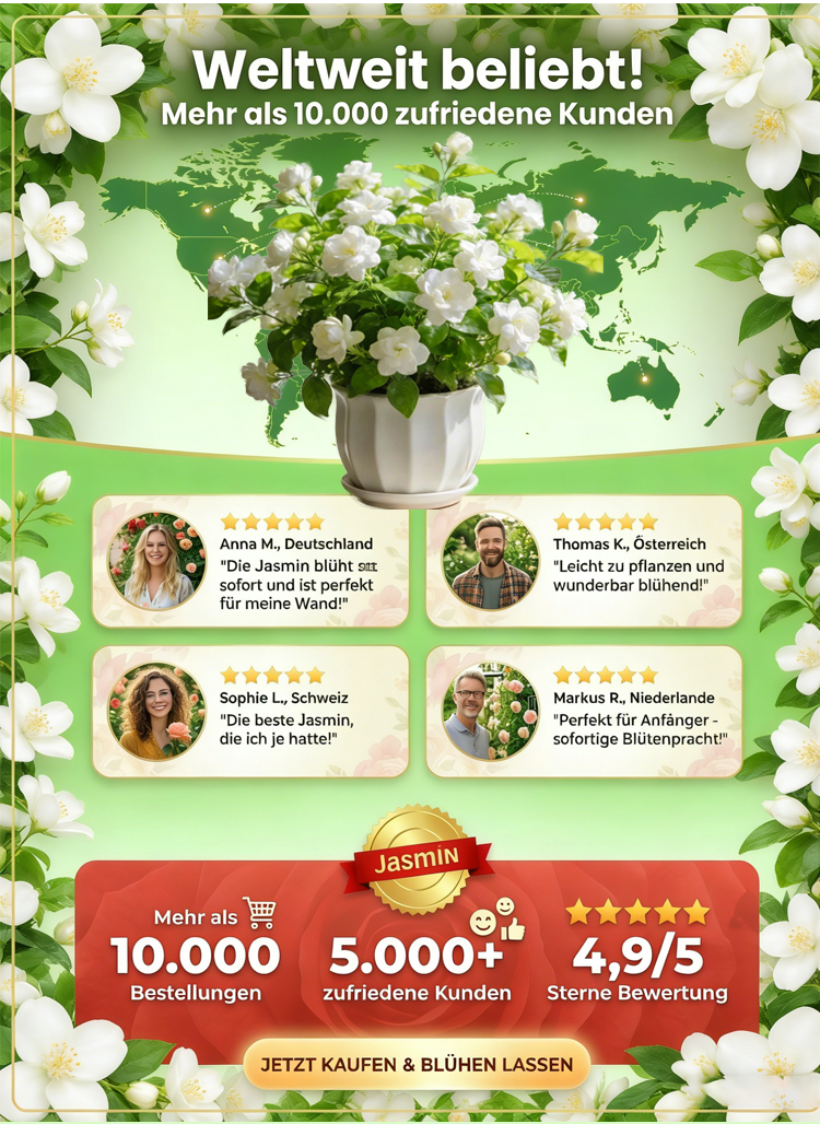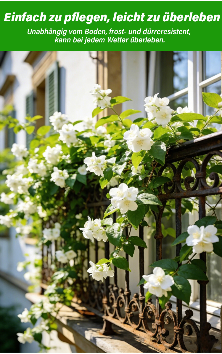 🏆 Empfohlen vom Deutschen Gartenbauverband – winterhart, pflegeleicht, ideal für Anfänger🌼 Gefüllter Jasmin mit intensivem Duft – dein persönliches Duftparadies zu Hause🌿 Blüht das ganze Jahr über – duftende Blüten für Balkon und Wohnung