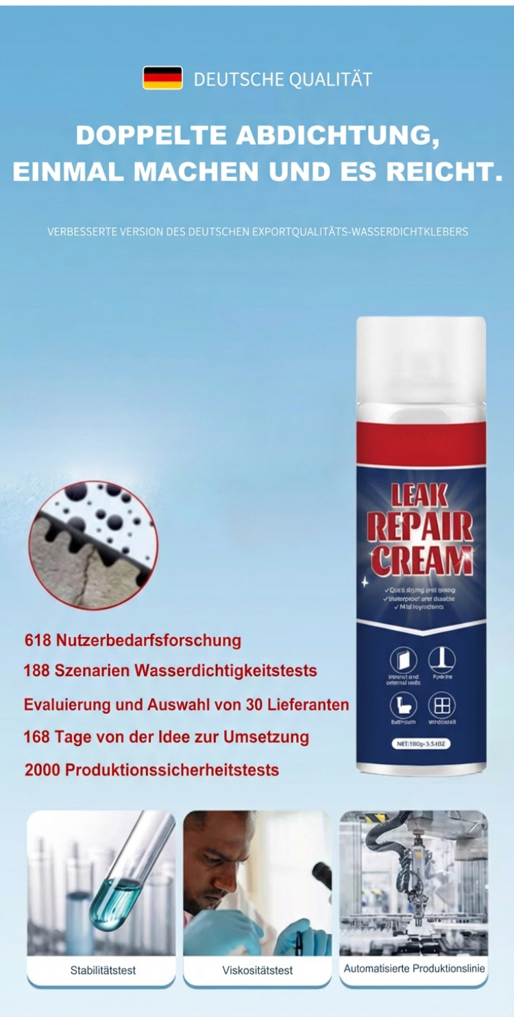 🇪🇺 EU-zertifiziert, umweltfreundlich, ungiftig – stoppt Lecks mit einem Auftrag🔥 Hitzebeständig, alterungsbeständig, dauerhaft wasserdicht – reißt nicht, löst sich nicht🛁 Für Bad, Rohre, Dach & Wände – 30 Jahre lang keine Probleme mehr.